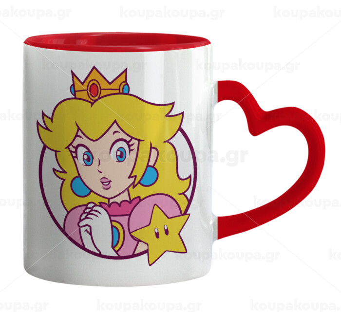Princess Peach, Mug heart red handle, ceramic, 330ml
