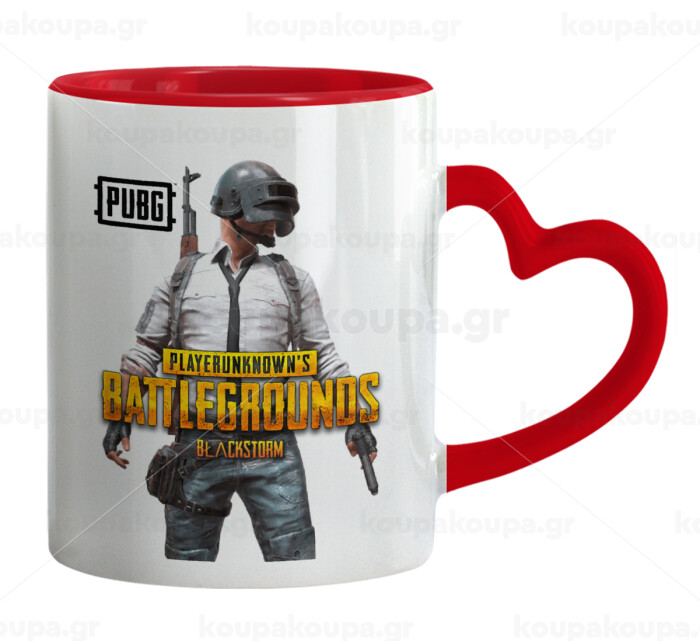 PUBG battleground royale, Mug heart red handle, ceramic, 330ml