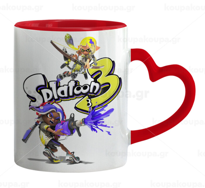 Splatoon 3, Mug heart red handle, ceramic, 330ml