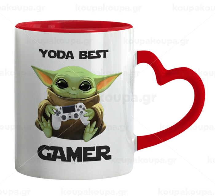 Yoda Best Gamer, Mug heart red handle, ceramic, 330ml