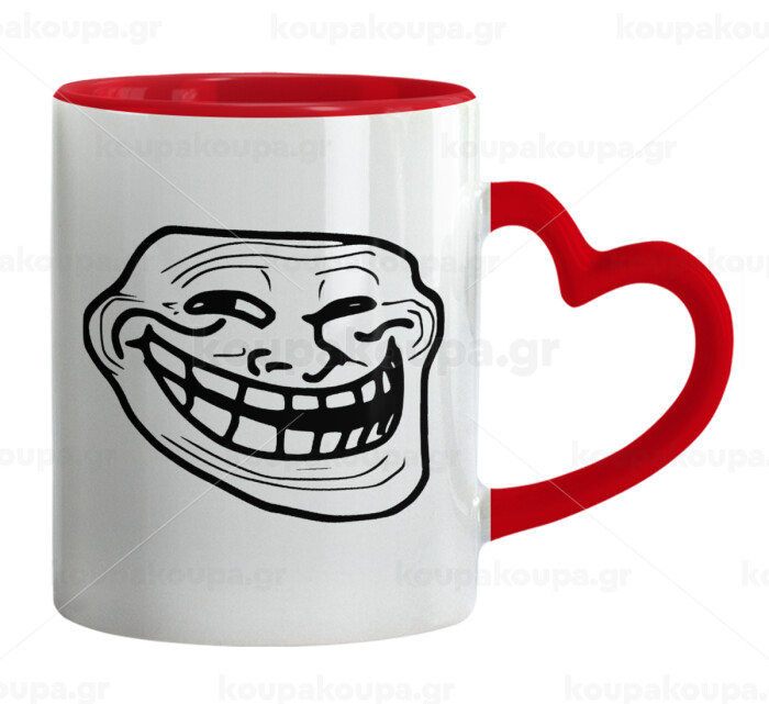 Troll face, Mug heart red handle, ceramic, 330ml