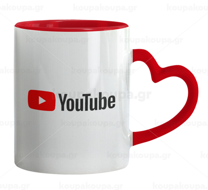 Youtube, Mug heart red handle, ceramic, 330ml