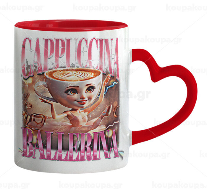 BALLERINA CAPUCHINA FUNK, Mug heart red handle, ceramic, 330ml