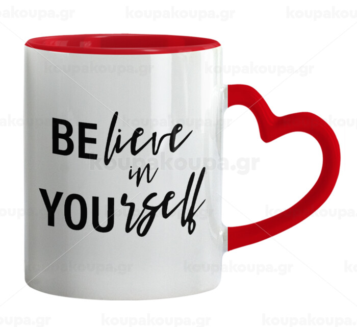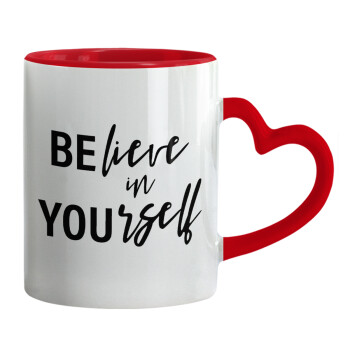 Believe in your self, Mug heart red handle, ceramic, 330ml