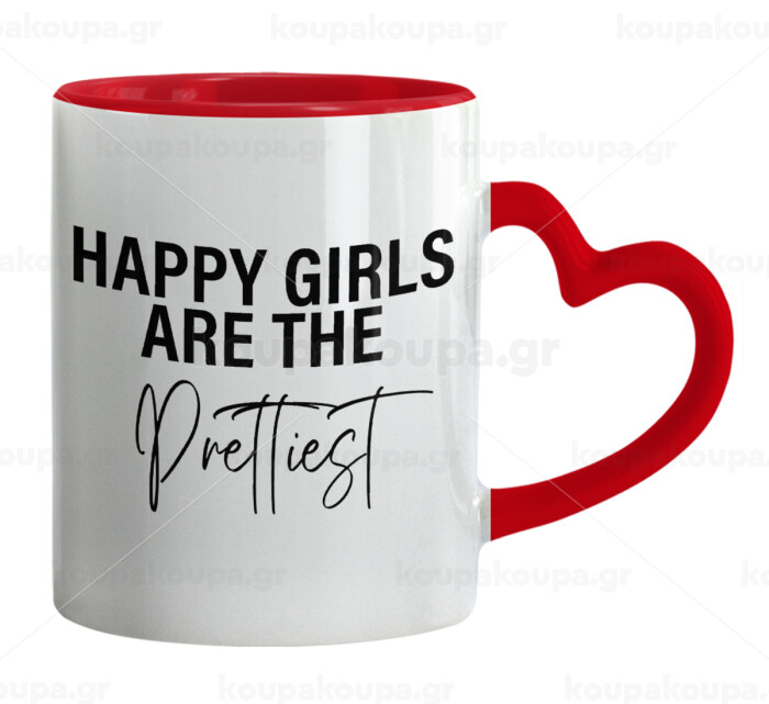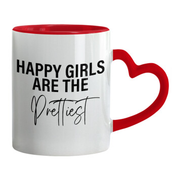 Happy girls are the prettiest, Mug heart red handle, ceramic, 330ml
