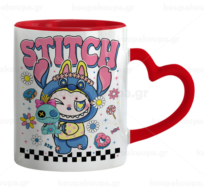 Labubu Stitch, Mug heart red handle, ceramic, 330ml