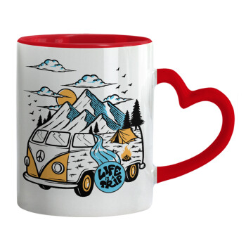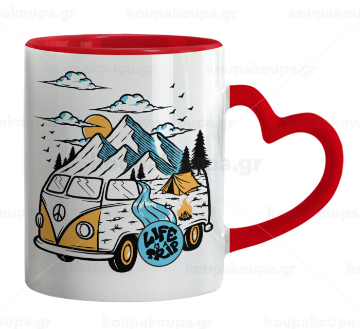 Life is a trip, Mug heart red handle, ceramic, 330ml