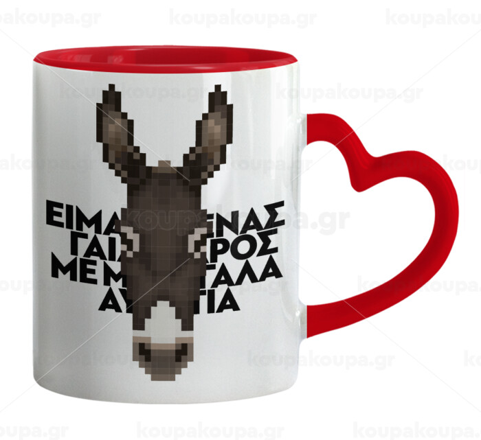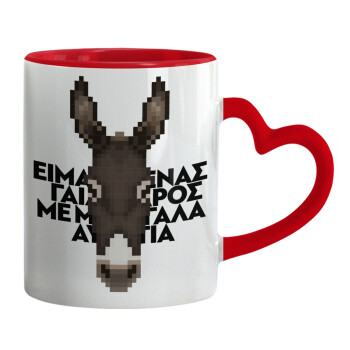 Είμαι ένας γάιδαρος με μεγάλα αυτιά., Mug heart red handle, ceramic, 330ml