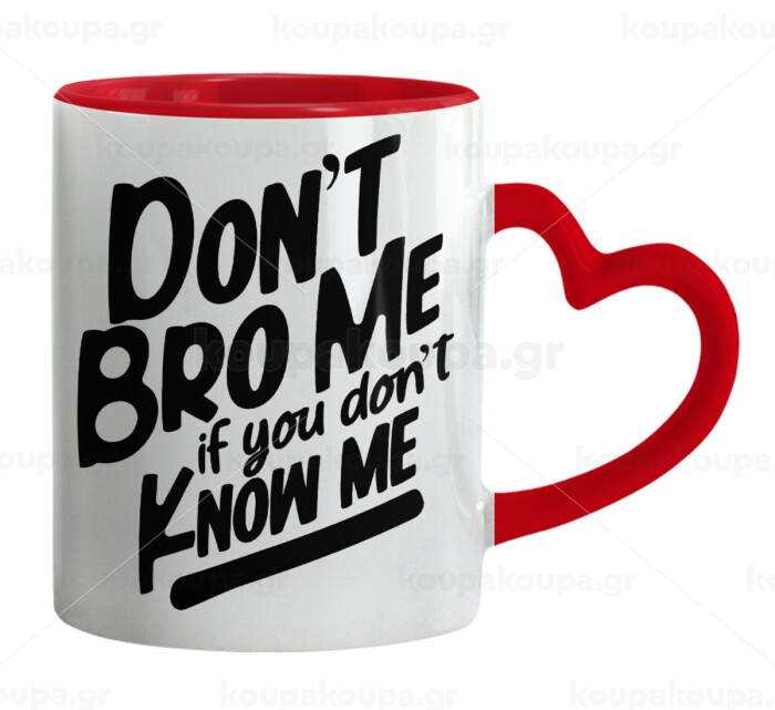 Dont't bro me, if you don't know me., Mug heart red handle, ceramic, 330ml