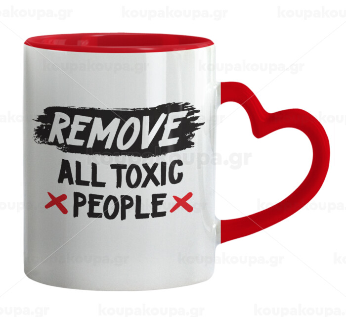 Remove all toxic people, Mug heart red handle, ceramic, 330ml