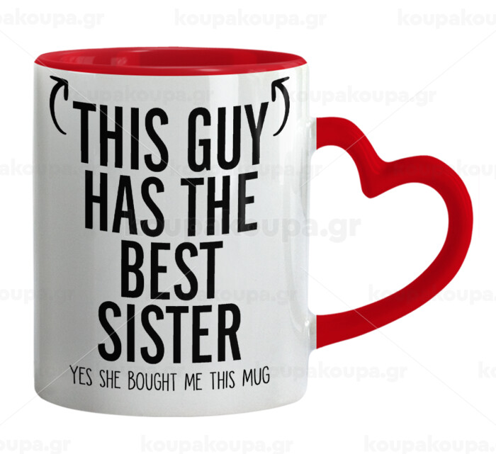 This guy has the best Sister, Mug heart red handle, ceramic, 330ml