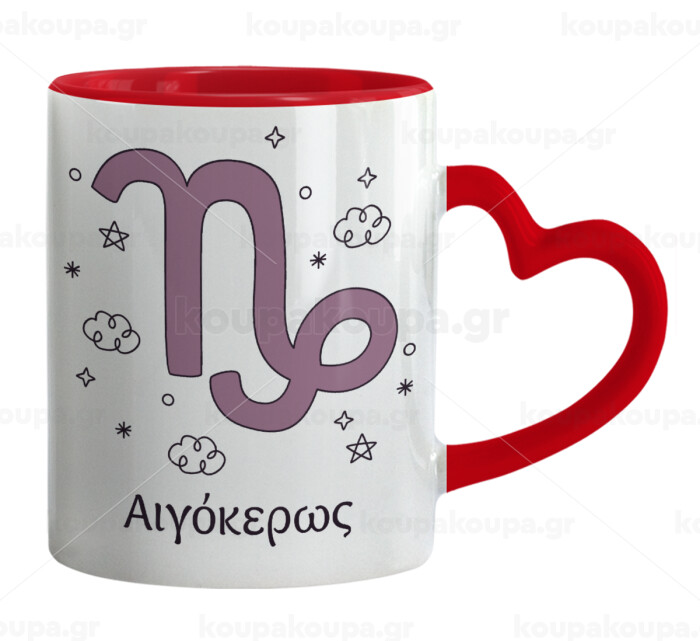 Ζώδια Αιγόκερως, Mug heart red handle, ceramic, 330ml