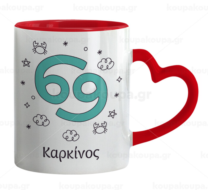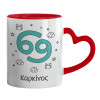 Ζώδια Καρκίνος, Mug heart red handle, ceramic, 330ml