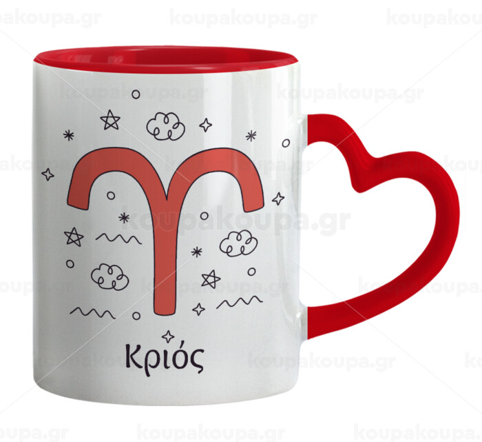 Ζώδια Κριός, Mug heart red handle, ceramic, 330ml