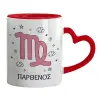 Ζώδια Παρθένος, Mug heart red handle, ceramic, 330ml