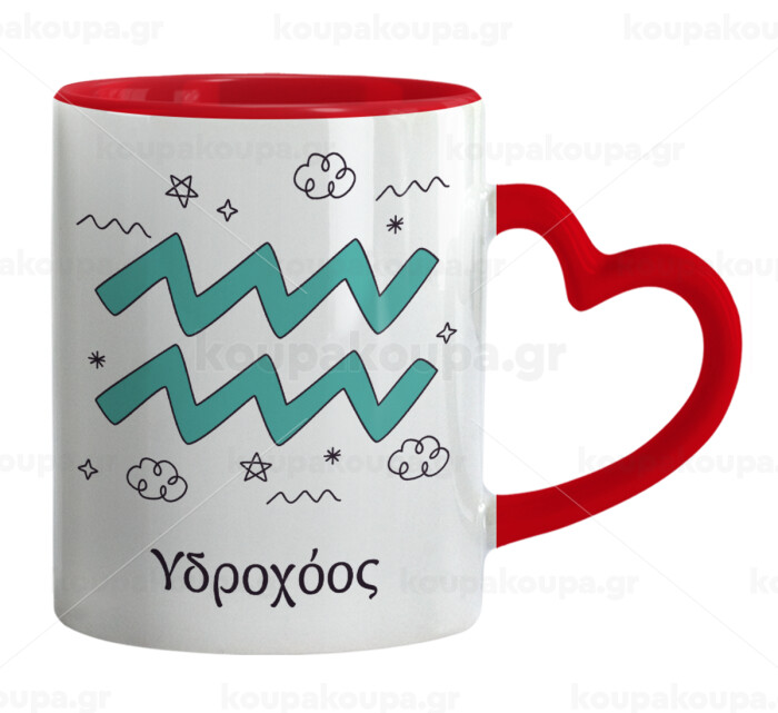Ζώδια Υδροχόος, Mug heart red handle, ceramic, 330ml