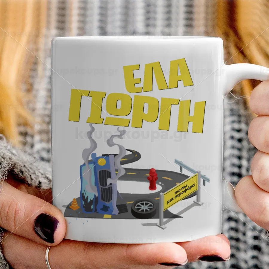 Έλα Γιώργη, πω πω μια στροφάρα, Ceramic coffee mug, 330ml