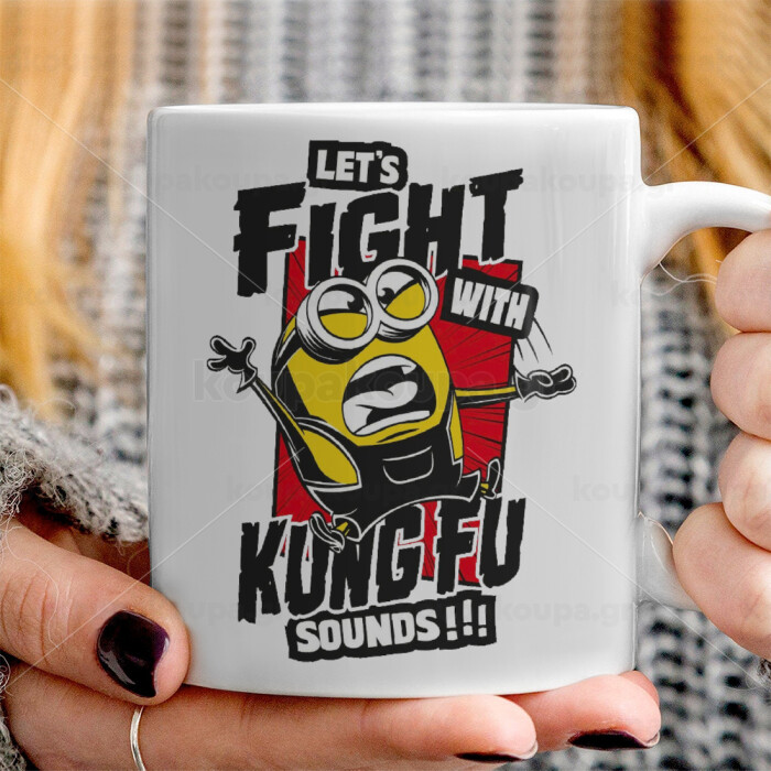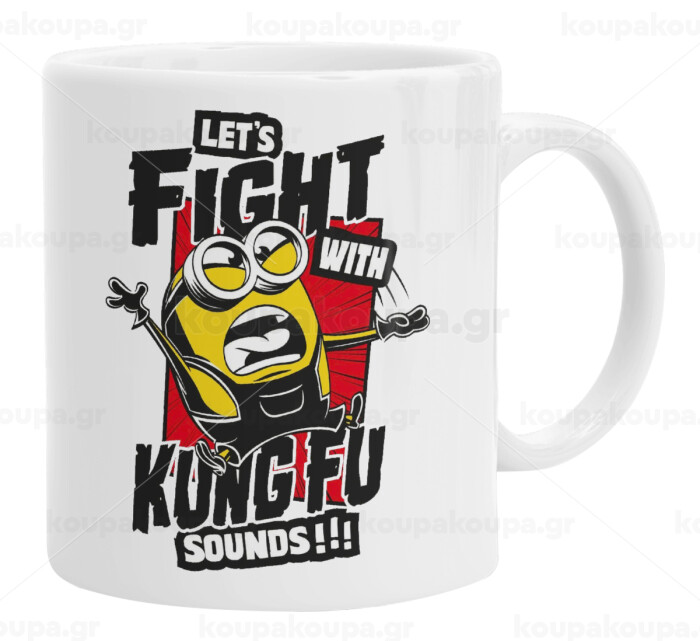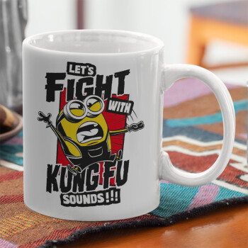 Minions Let's fight with kung fu sounds, Ceramic coffee mug, 330ml