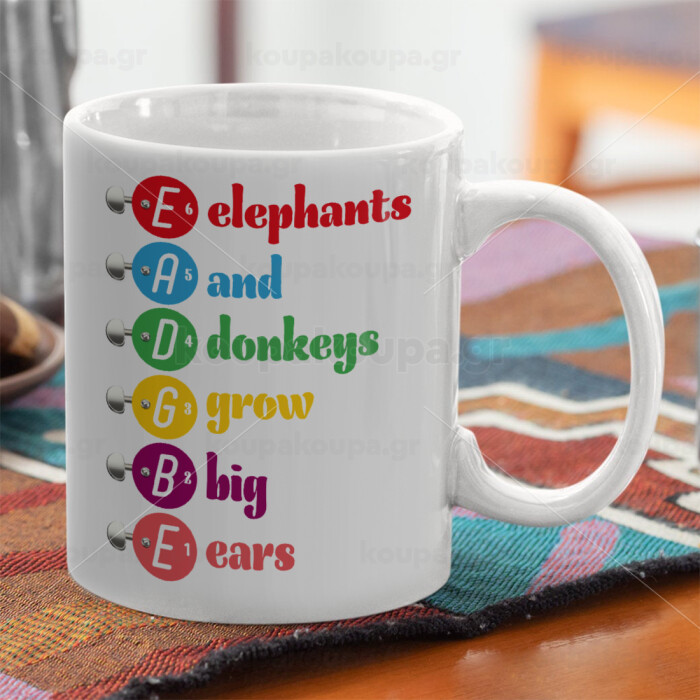 Elephants And Donkeys Grow Big Ears, Ceramic coffee mug, 330ml