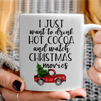 I just want to drink hot cocoa and watch christmas movies pickup car, Ceramic coffee mug, 330ml