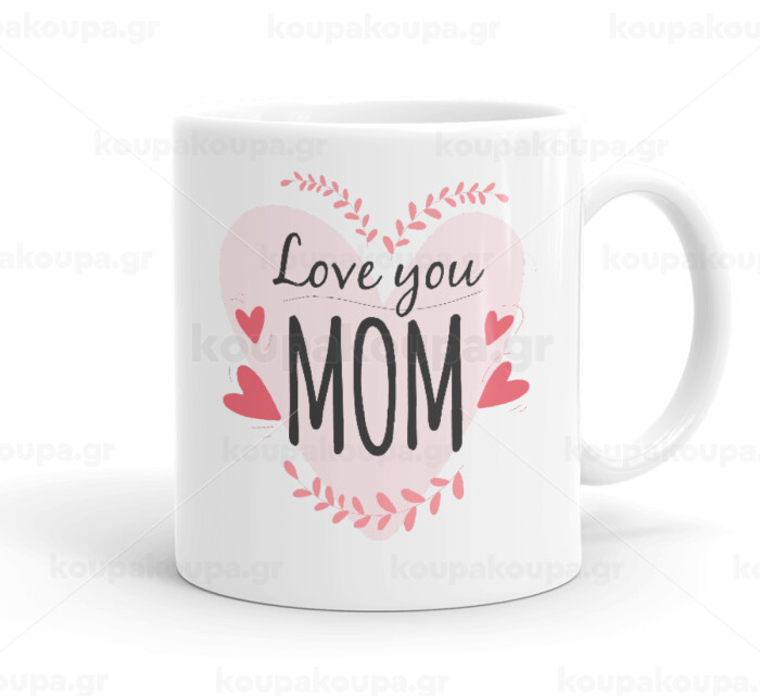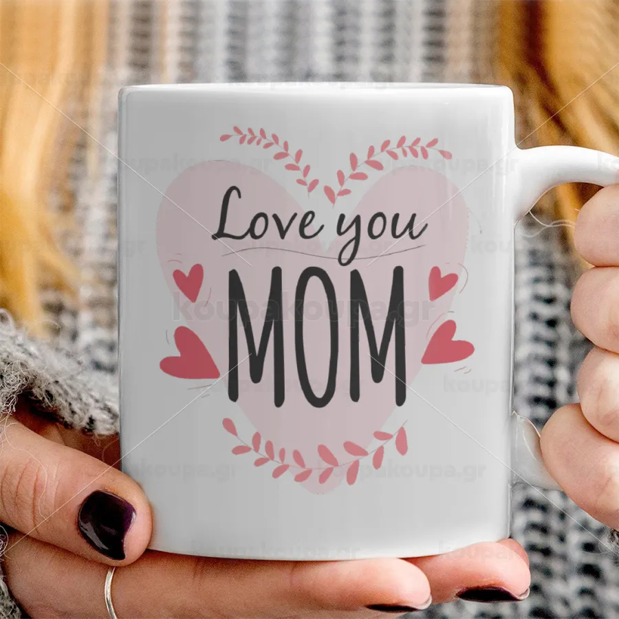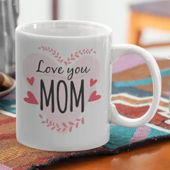 Mother's day I Love you Mom heart, Ceramic coffee mug, 330ml