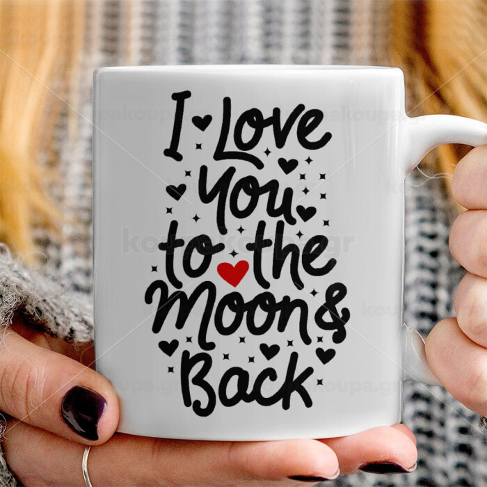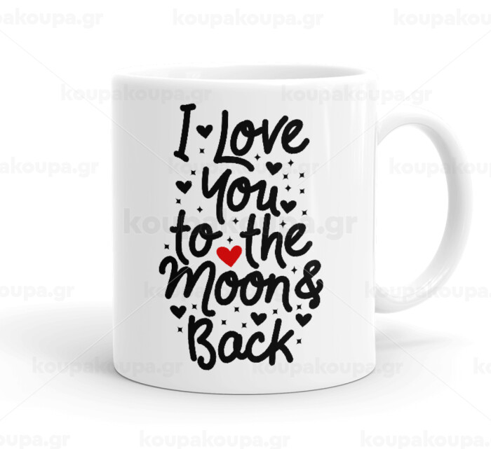 I love you to the moon and back with hearts, Ceramic coffee mug, 330ml