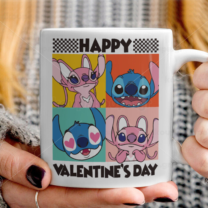 Lilo & Stitch Happy valentines day, Ceramic coffee mug, 330ml