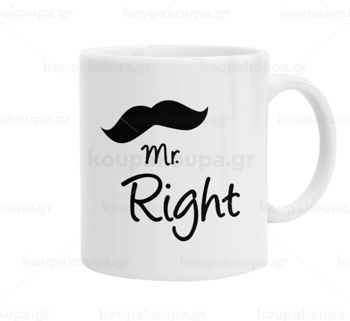 Mr right Mustache, Ceramic coffee mug, 330ml