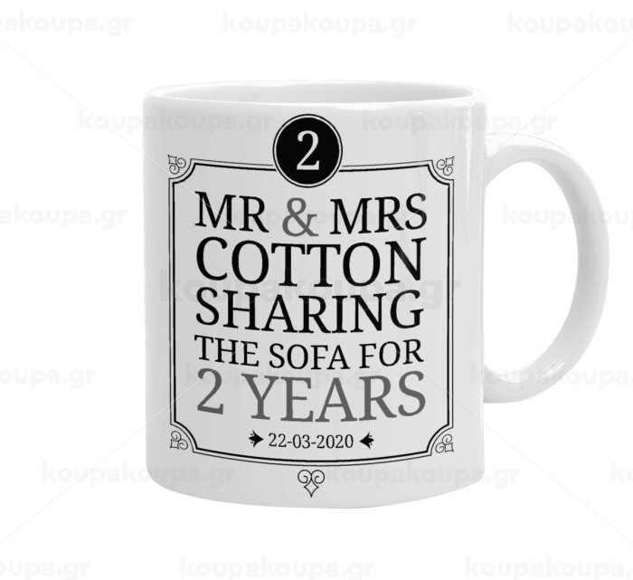 Mr & Mrs Sharing the sofa, Ceramic coffee mug, 330ml
