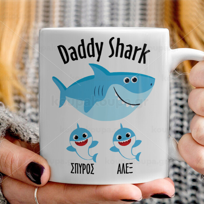 Daddy Shark (με ονόματα παιδικά), Ceramic coffee mug, 330ml