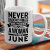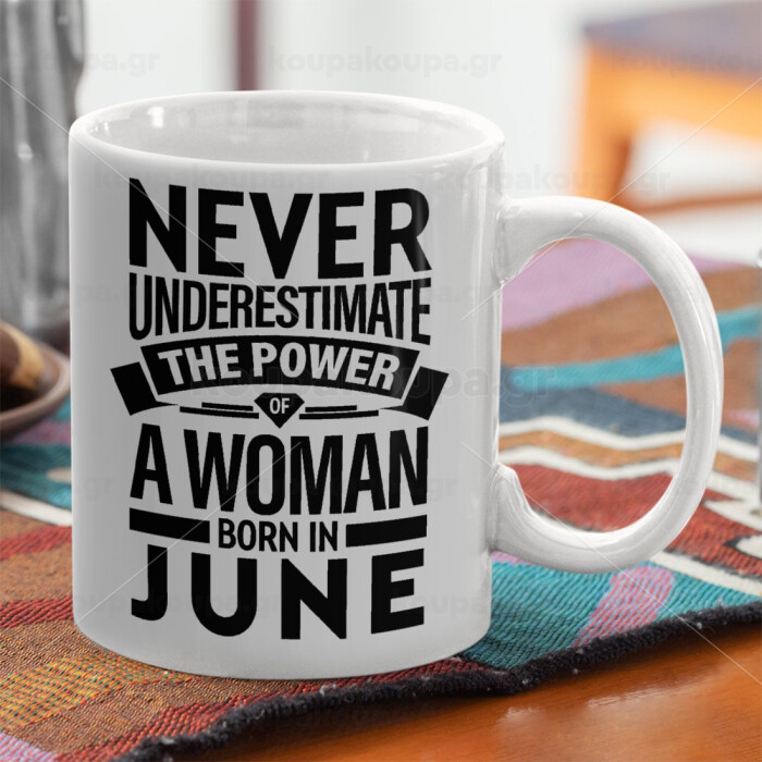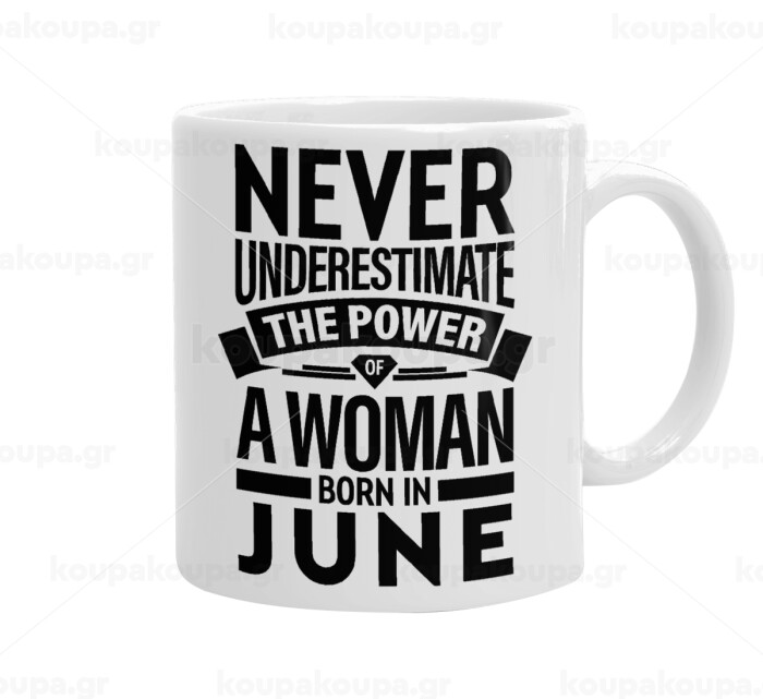 Never Underestimate the poer of a Woman born in..., Ceramic coffee mug, 330ml