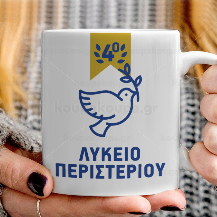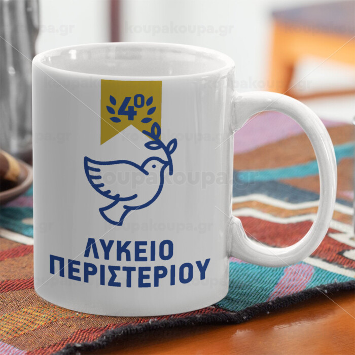 Έμβλημα Σχολικό μπλε/χρυσό περιστέρι, Ceramic coffee mug, 330ml