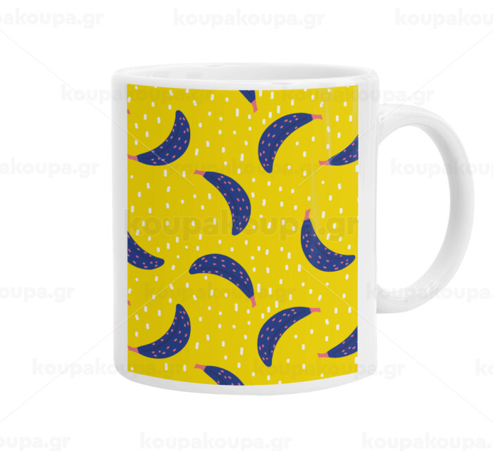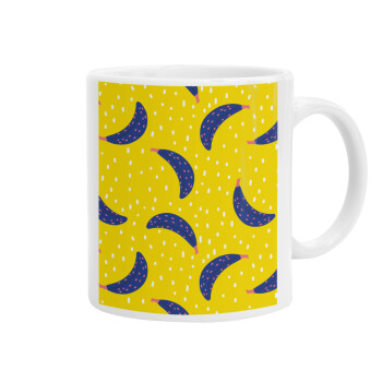 Yellow seamless with blue bananas, Ceramic coffee mug, 330ml