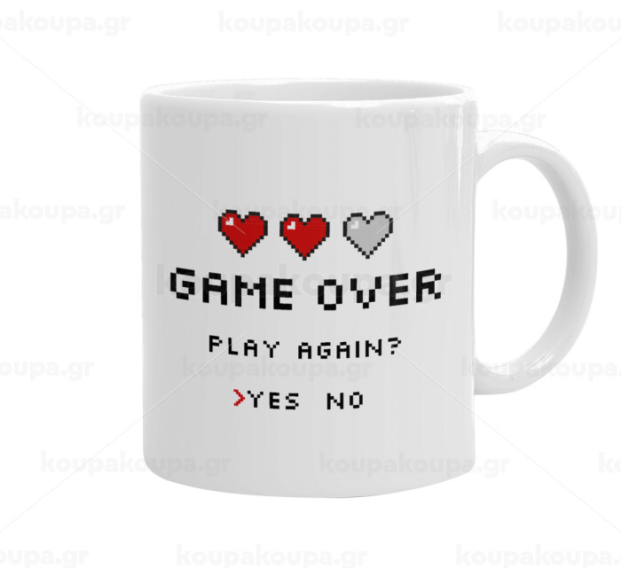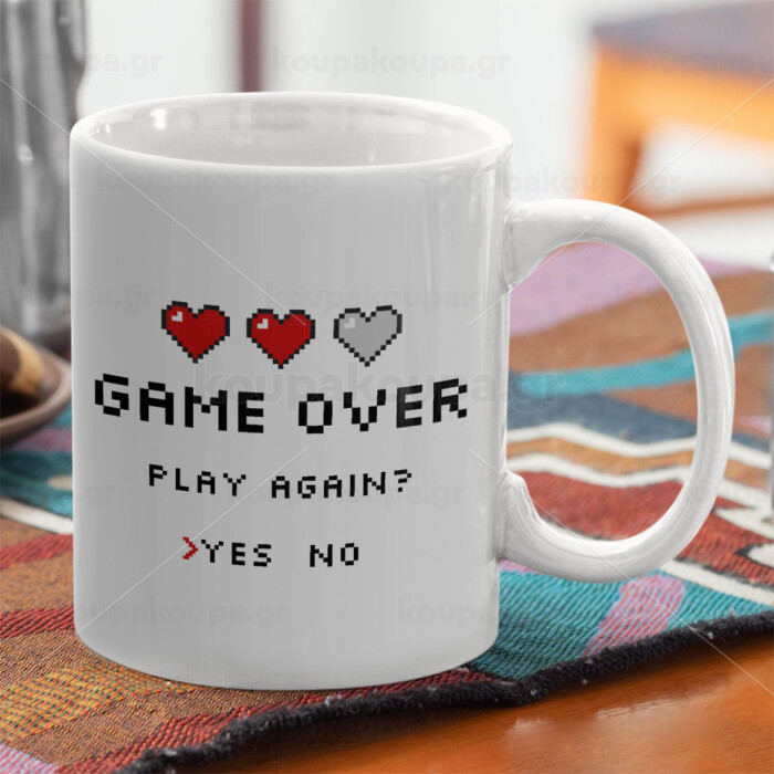 GAME OVER, Play again? YES - NO, Ceramic coffee mug, 330ml