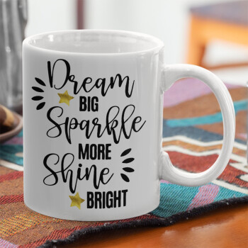 Dream big, Sparkle more, Shine bright, Ceramic coffee mug, 330ml