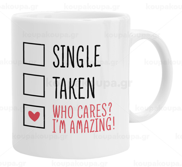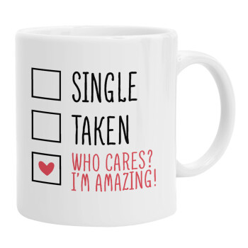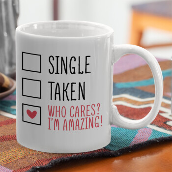 Single, Taken, Who cares i'm amazing, Ceramic coffee mug, 330ml