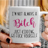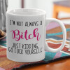 I'm not always a bitch, just kidding go f..k yourself , Ceramic coffee mug, 330ml