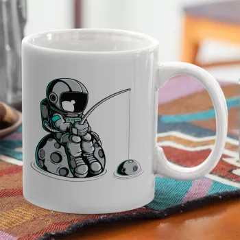 Little astronaut fishing, Ceramic coffee mug, 330ml
