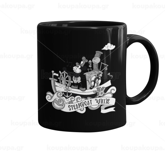 Mickey steamboat, Mug black, ceramic, 330ml