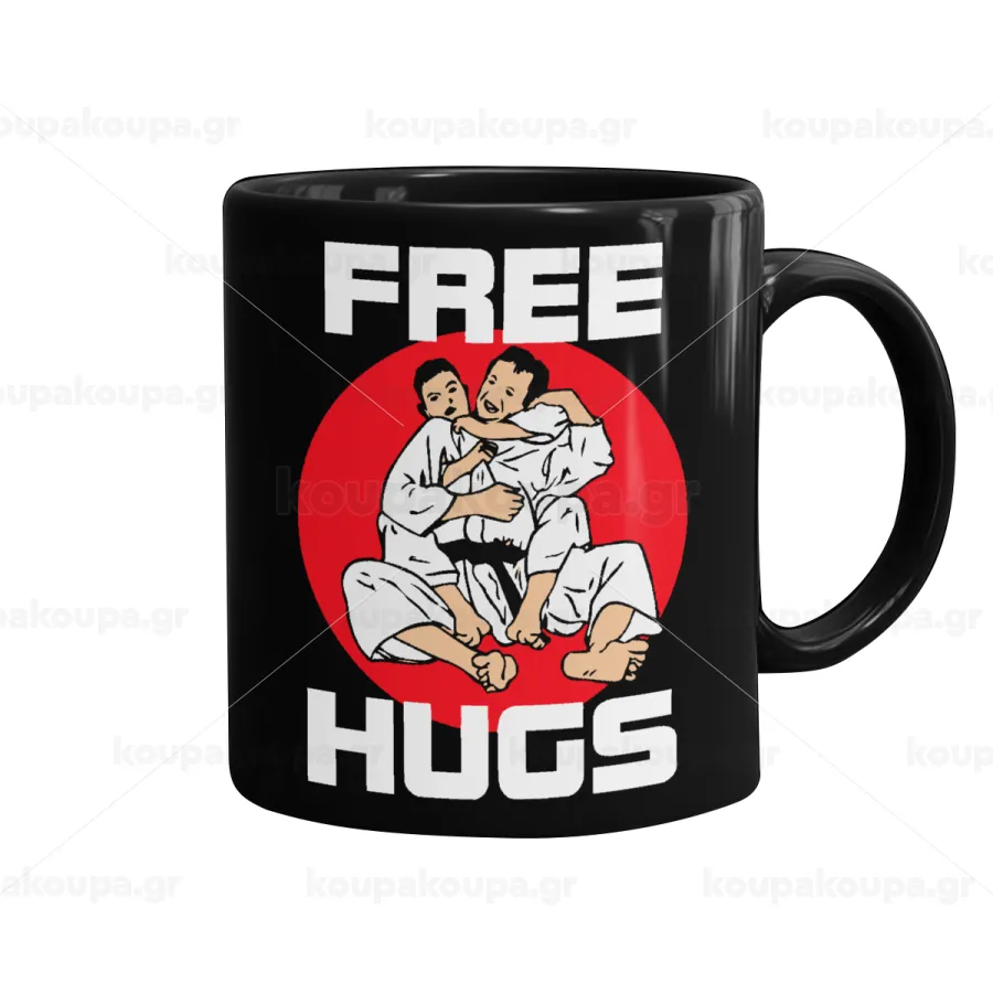 JUDO free hugs, Mug black, ceramic, 330ml