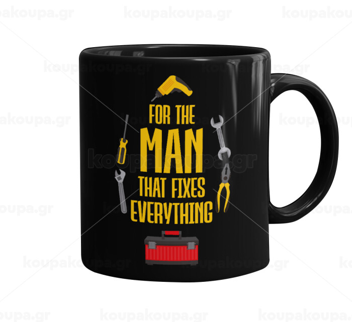 For the man that fixes everything!, Mug black, ceramic, 330ml