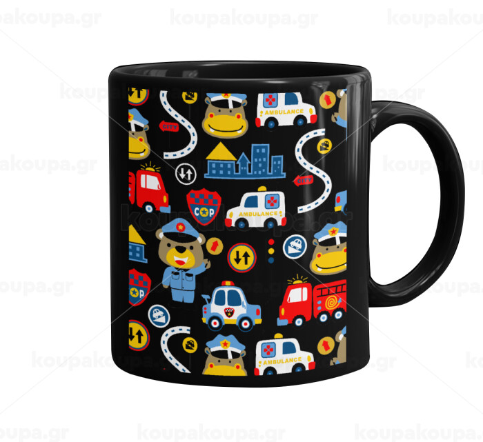 Rescue team cartoon, Mug black, ceramic, 330ml