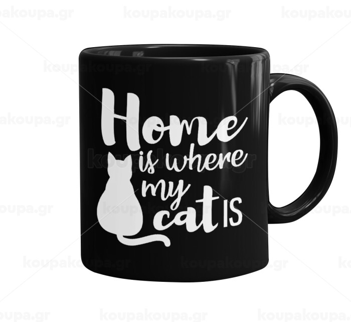 Home is where my cat is!, Mug black, ceramic, 330ml