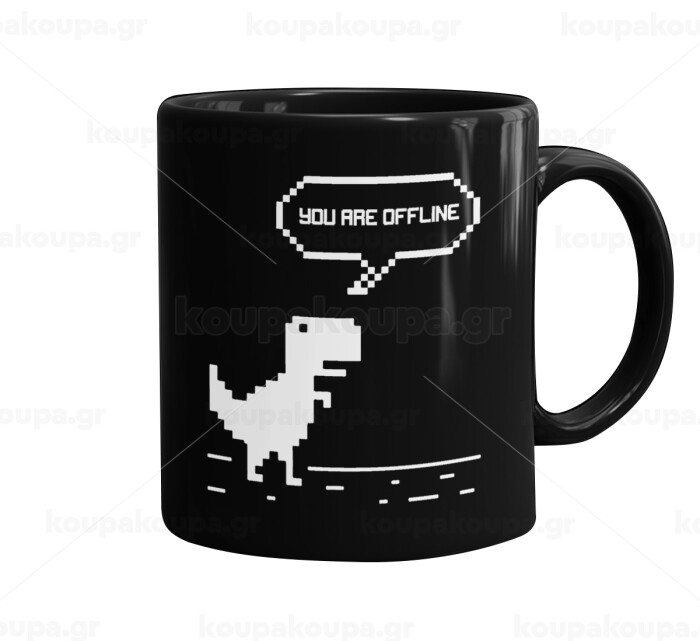 You are offline dinosaur, Mug black, ceramic, 330ml