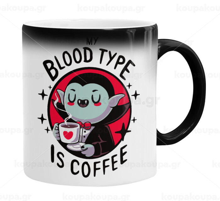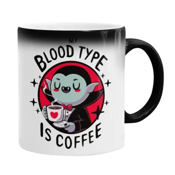 My blood type is coffee, Color changing magic Mug, ceramic, 330ml when adding hot liquid inside, the black colour desappears (1 pcs)