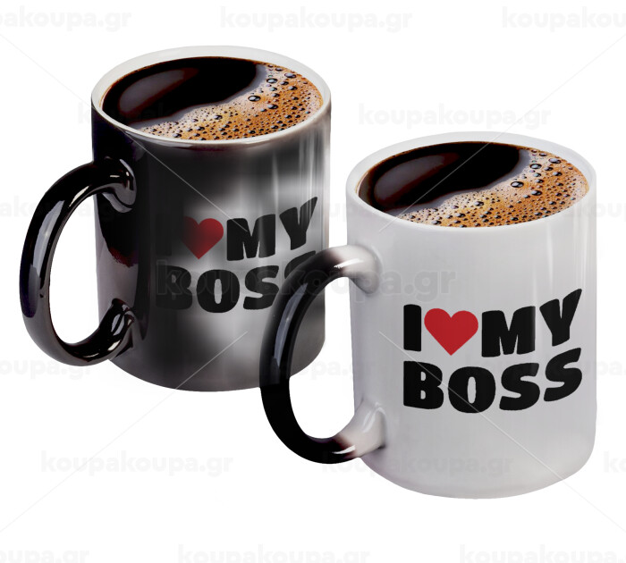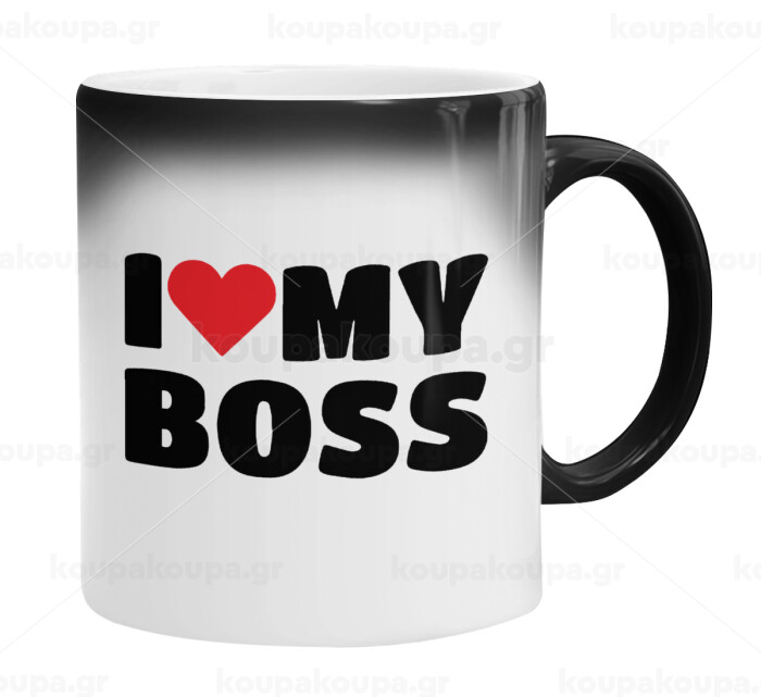 I LOVE MY BOSS, Color changing magic Mug, ceramic, 330ml when adding hot liquid inside, the black colour desappears (1 pcs)