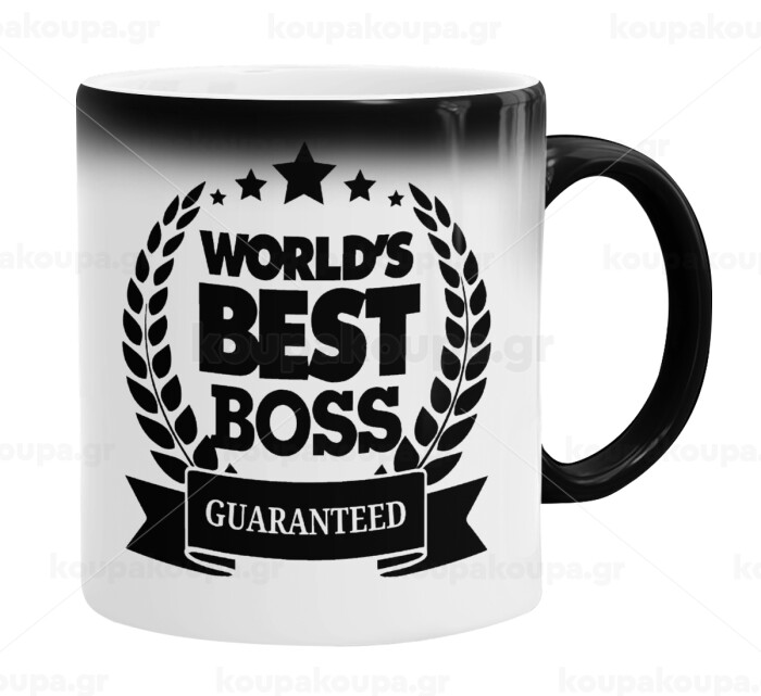 World's best boss stars, Color changing magic Mug, ceramic, 330ml when adding hot liquid inside, the black colour desappears (1 pcs)