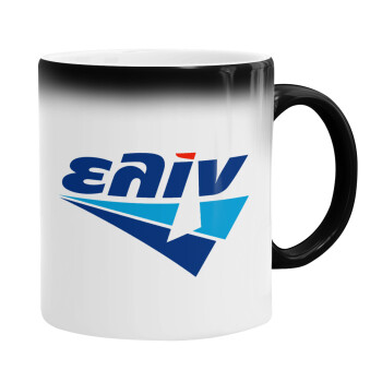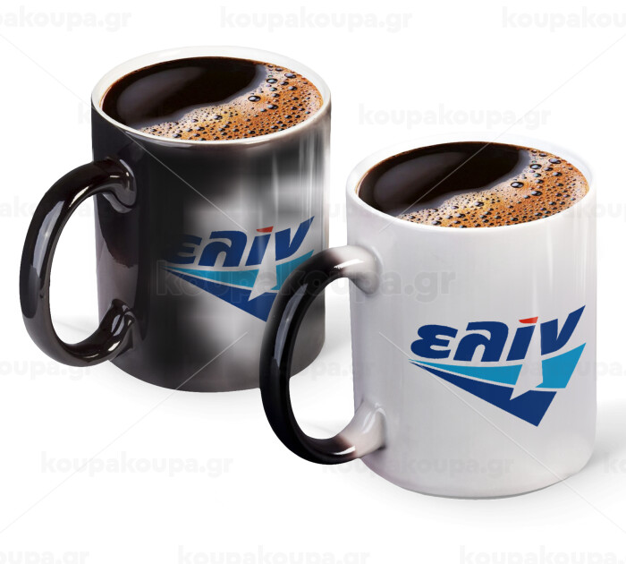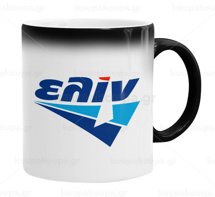 Πρατήριο καυσίμων ΕΛΙΝ, Color changing magic Mug, ceramic, 330ml when adding hot liquid inside, the black colour desappears (1 pcs)