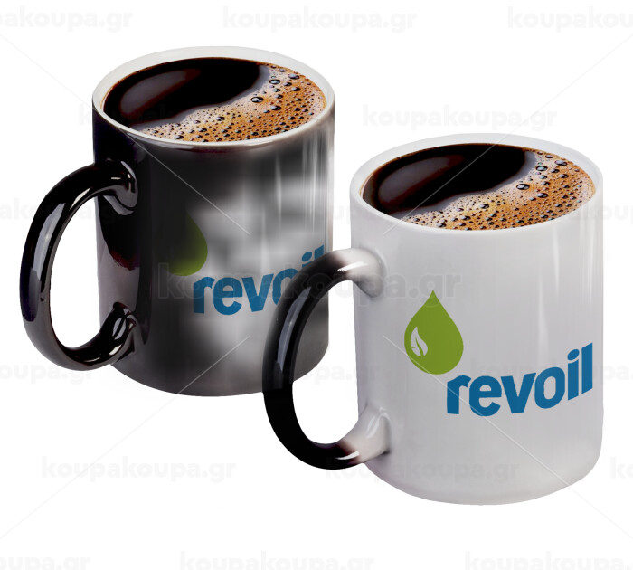 Πρατήριο καυσίμων REVOIL, Color changing magic Mug, ceramic, 330ml when adding hot liquid inside, the black colour desappears (1 pcs)