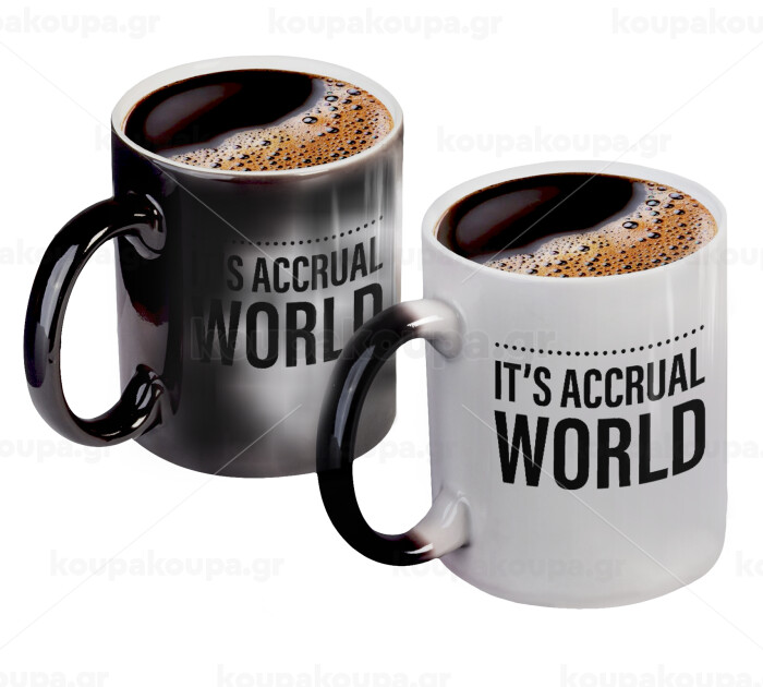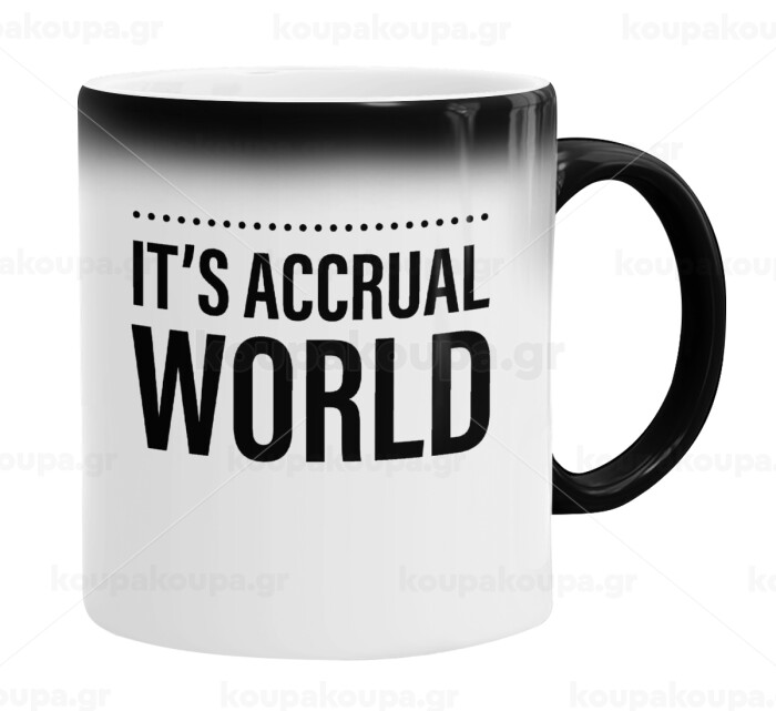 It's an accrual world, Color changing magic Mug, ceramic, 330ml when adding hot liquid inside, the black colour desappears (1 pcs)
